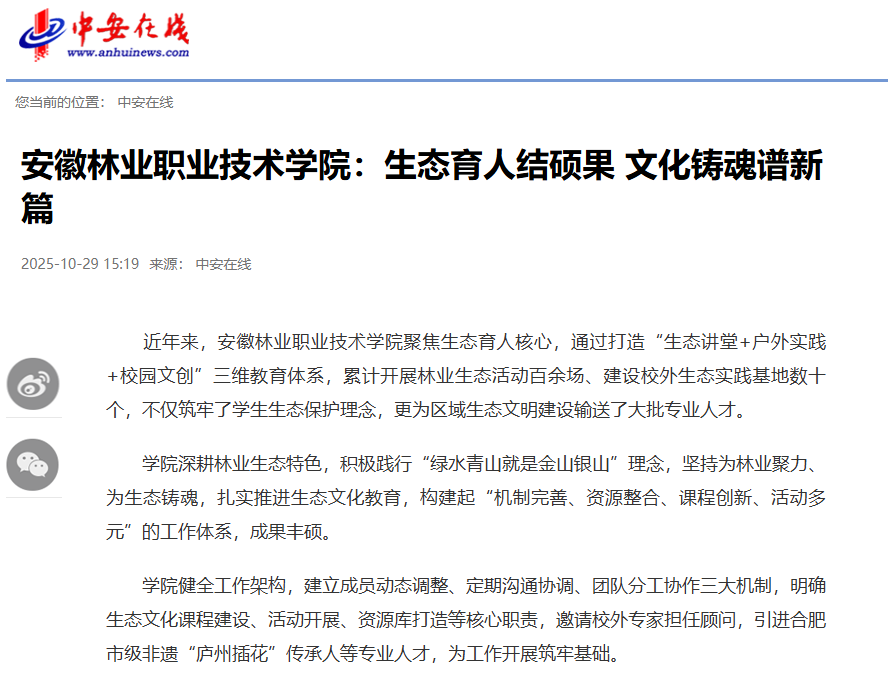 近日,省級媒體“中安在線”對我院生態(tài)文化教育工作進行了報道。近年來...